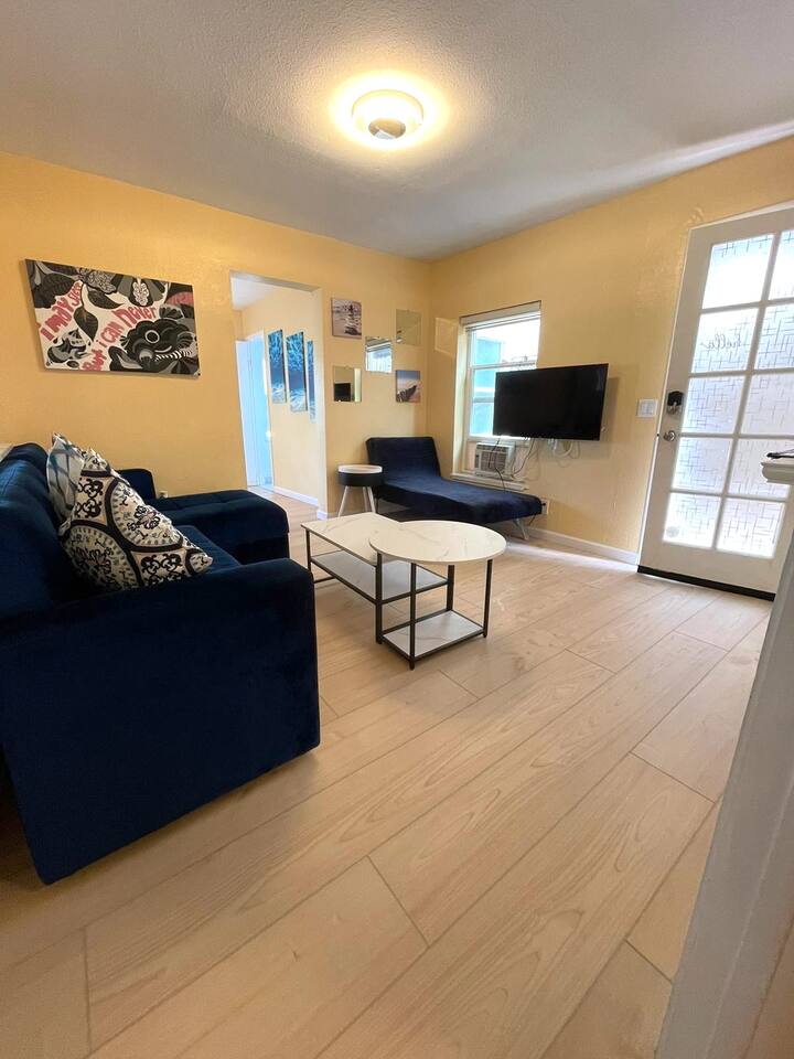🛏 What You’ll Love ✅ Sleeps 7 comfortably: • 2 bedrooms with queen beds • 1 large living room sofa that converts to a bed • 1 single living room sofa that converts to a bed ✅ 1 full and one 1/2 bathroom recently remodeled ✅ Fully stocked kitchen—cook with ease ✅ Fast WiFi + Smart TV for streaming ✅ Air conditioning & heating for year-round comfort ✅ Pet-friendly—your furry friends are welcome! ✅ Early check-in/late check-out available (small fee, when available) 🌿 Shared Backyard 🔥 Firepit for evening s’mores and stories 🍔 BBQ grill for fun cookouts 🛝 Playset with swing, slide & playhouse—a hit with the kids! • Private Balcony with views of a vibrant, welcoming neighborhood 🚗 Guest Access • Full access to the entire apartment, private balcony • Free street parking in the entire neighborhood • Washer and Dryer in the basement (coin-operated and shared) • Backyard is shared with the other units 📍 Location Highlights We're located in a safe, walkable neighborhood close to everything: • 👟 Walk to Hillcrest & North Park—bars, restaurants, shops • 🚗 5 mins to Gaslamp, Balboa Park, Zoo, Airport, MCRD... • 🌊 10 mins to Beaches, SeaWorld, Mission Bay • 😊 Friendly community with a relaxed San Diego vibe 🐾 Additional Notes • Well-behaved pets are welcome! • Early check-in/late check-out can be arranged in advance (small fee applies) • Perfect for families with kids—plenty of space and activities • Great for remote work with reliable WiFi