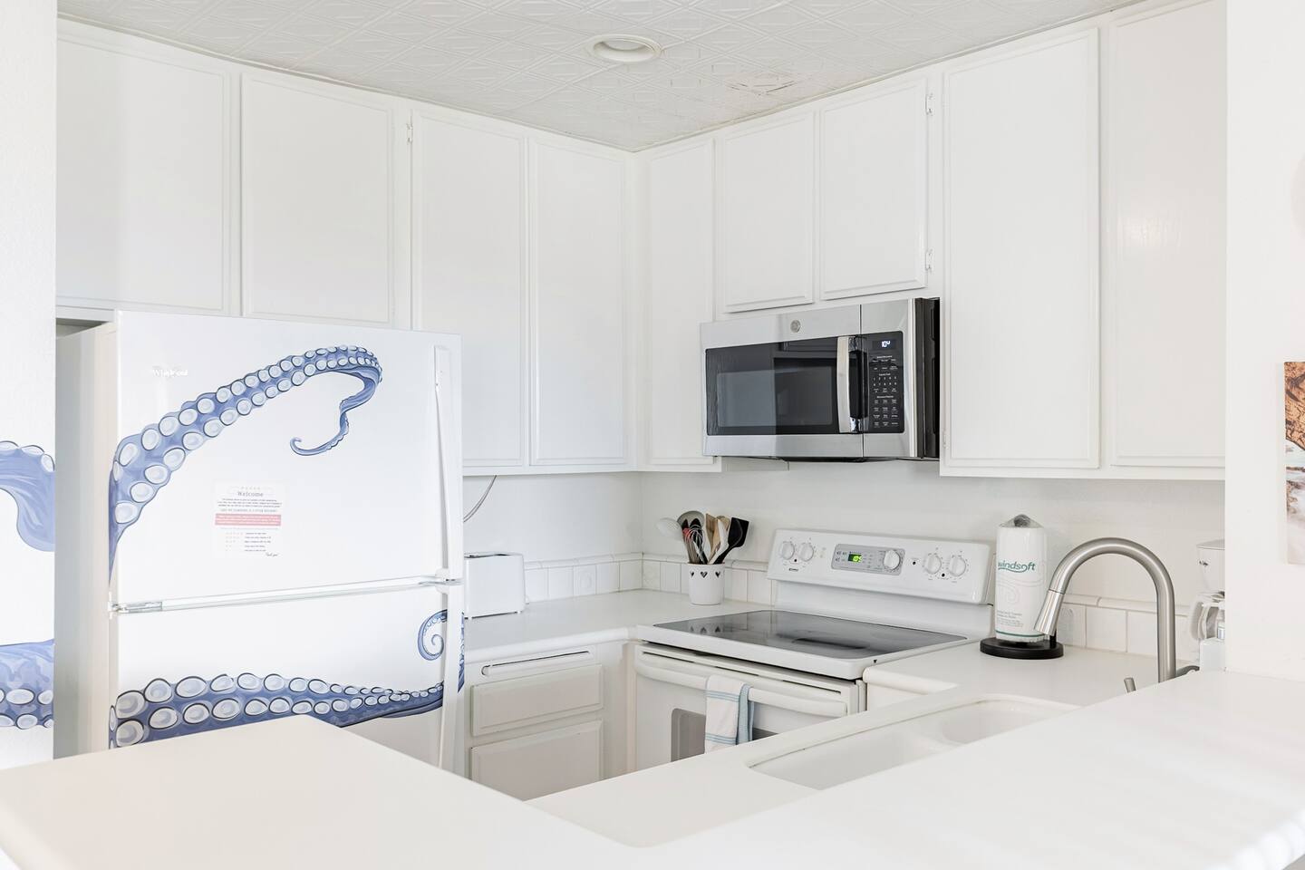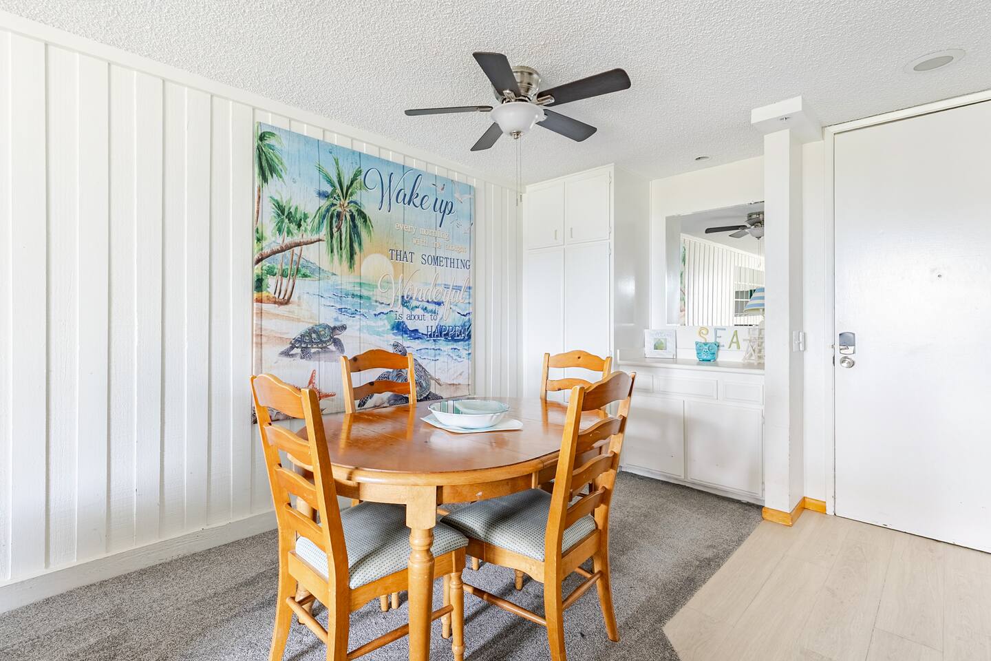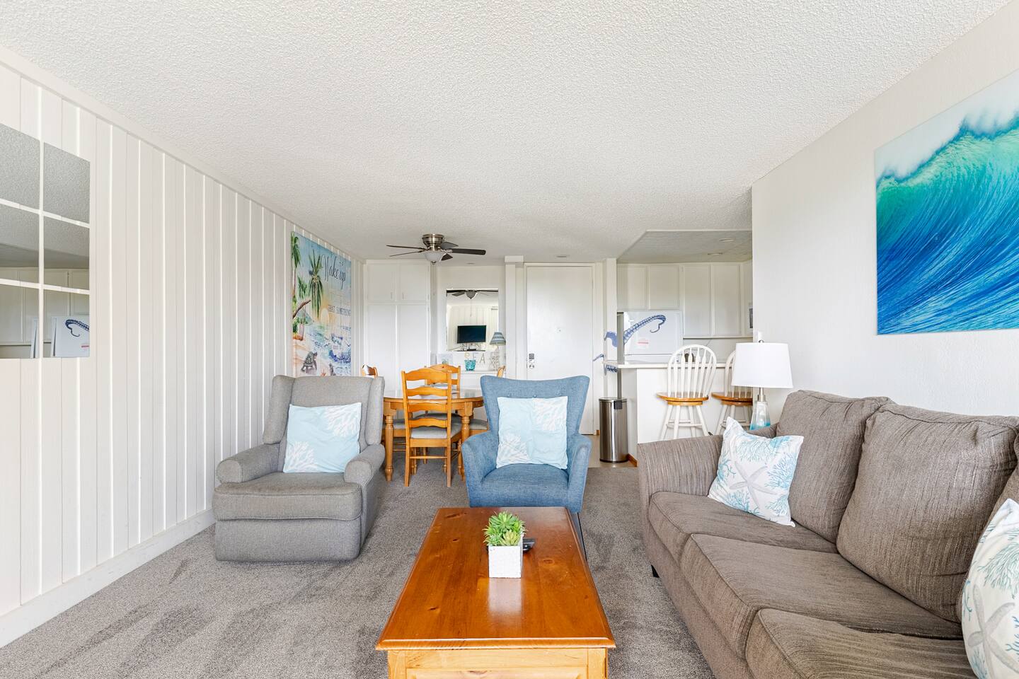 Enjoy the gorgeous ocean views, beautiful Pool, hot Tub and Beach at North Coast Village. This Oceanview condo will soothe you with shades of blue and turquoise as you gaze out at the sea. Relax on the balcony and listen to the sounds of the waves or enjoy the beach! The living area offers a comfortable sofa and 2 arm chairs. One bedroom has a king bed and ocean views and the other has a queen and a twin bunk bed. Both bedrooms have portable air condition units in the bedrooms.