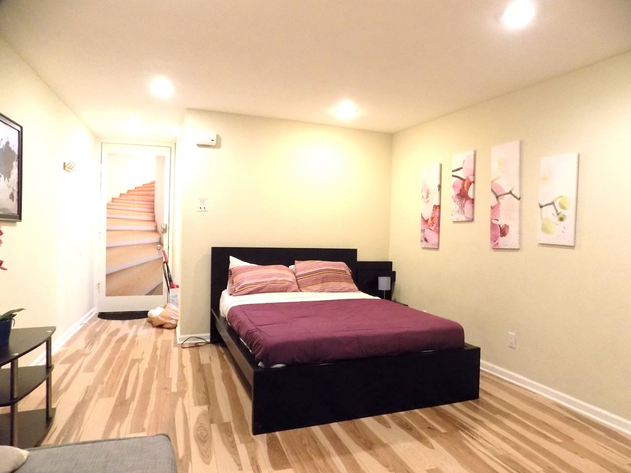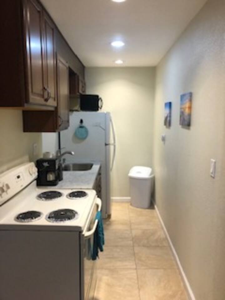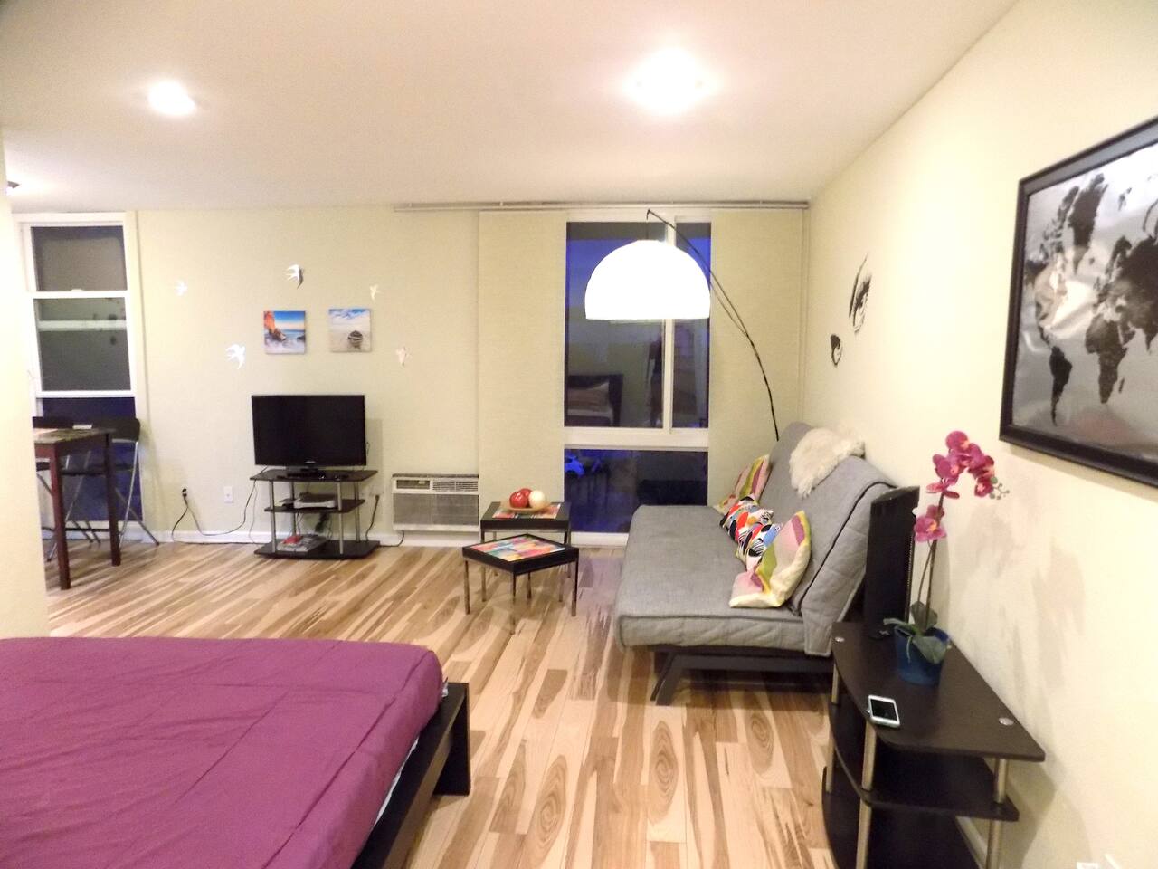 Bright Studio in Resort Setting near SeaWorld This modern studio apartment is so close to SeaWorld San Diego, you can actually stand on the balcony area just outside and watch their nightly fireworks show! Ocean Beach is an easy, one-mile walk away—so not only do you have the perks of a swanky resort-style setting with a pool, fitness center, and other amenities, you also have an awesome beach within walking distance! Or, if you’re loaded down with beach gear and would rather not walk, you can catch the bus at the stop nearby. and if you need some fireworks at night, it is so close to SeaWorld San Diego, you can actually stand on the balcony area just outside and watch their nightly fireworks show! If you decide to bring a car, you’ll have a parking spot at the complex ready and waiting for you at no extra charge. The lush surroundings for this apartment make you feel like you’re staying at a resort, but with more personality! You have access to all amenities, including a pool, hot tub, fitness center, beach volleyball nets, a BBQ area, and tennis courts. The complex’s landscaped grounds are a beautiful, palm-tree-lined setting for a stroll or a short jog. Because the apartment itself is my personal place, I take great care of it and fuss over all the details. The kitchen is fully functional with dishware and cooking utensils so you can eat in and save a little money. The bathroom has plush towels and personal care items. Linens are provided as well. There’s even a washer and dryer in the unit! The space is cozy and open, washed in natural light, and great for families, with plush queen-sized bed and a pull-out couch. You will crash into a deep, restful sleep after a long day at the beach, the pool, or watching the playful marine life at neighboring SeaWorld. Couples really enjoy it here, too. You can spend the day out and about, lounging at the pool or ride bikes to the beach, then come home and make dinner together. Or put on your Date Night outfits and head for downtown San Diego which is just a short uber ride away. I’m happy to give personal suggestions to make your stay wonderful. Hope to host you soon in sunny San Diego!