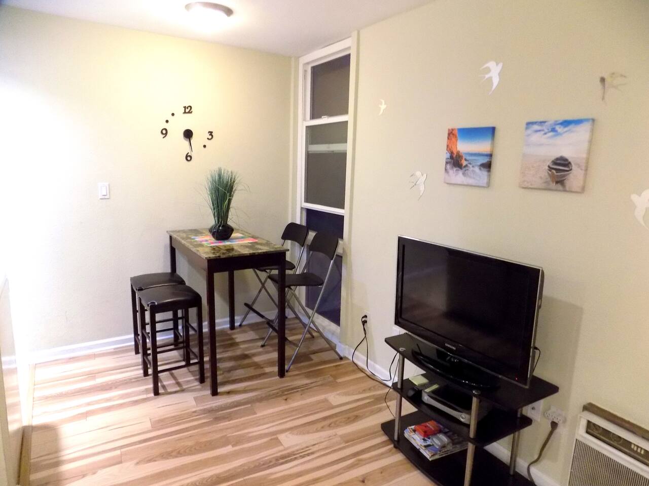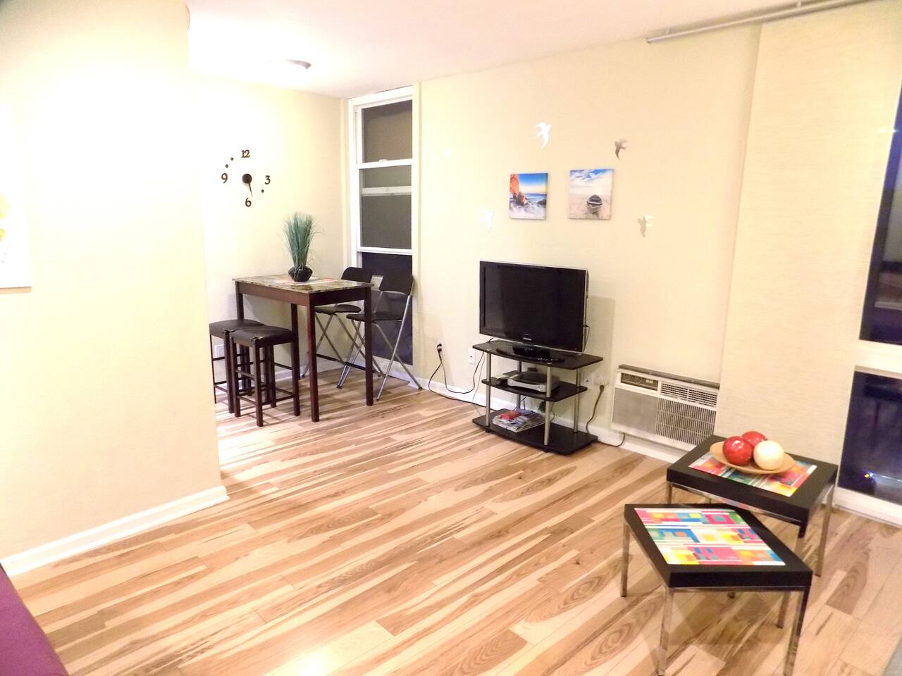 This very centrally located modern studio apartment make you feel like you’re staying at a resort, but with more personality! You have access to the complex’s pool (kids love it), hot tub, fitness center, beach volleyball nets, a BBQ area, and tennis courts.